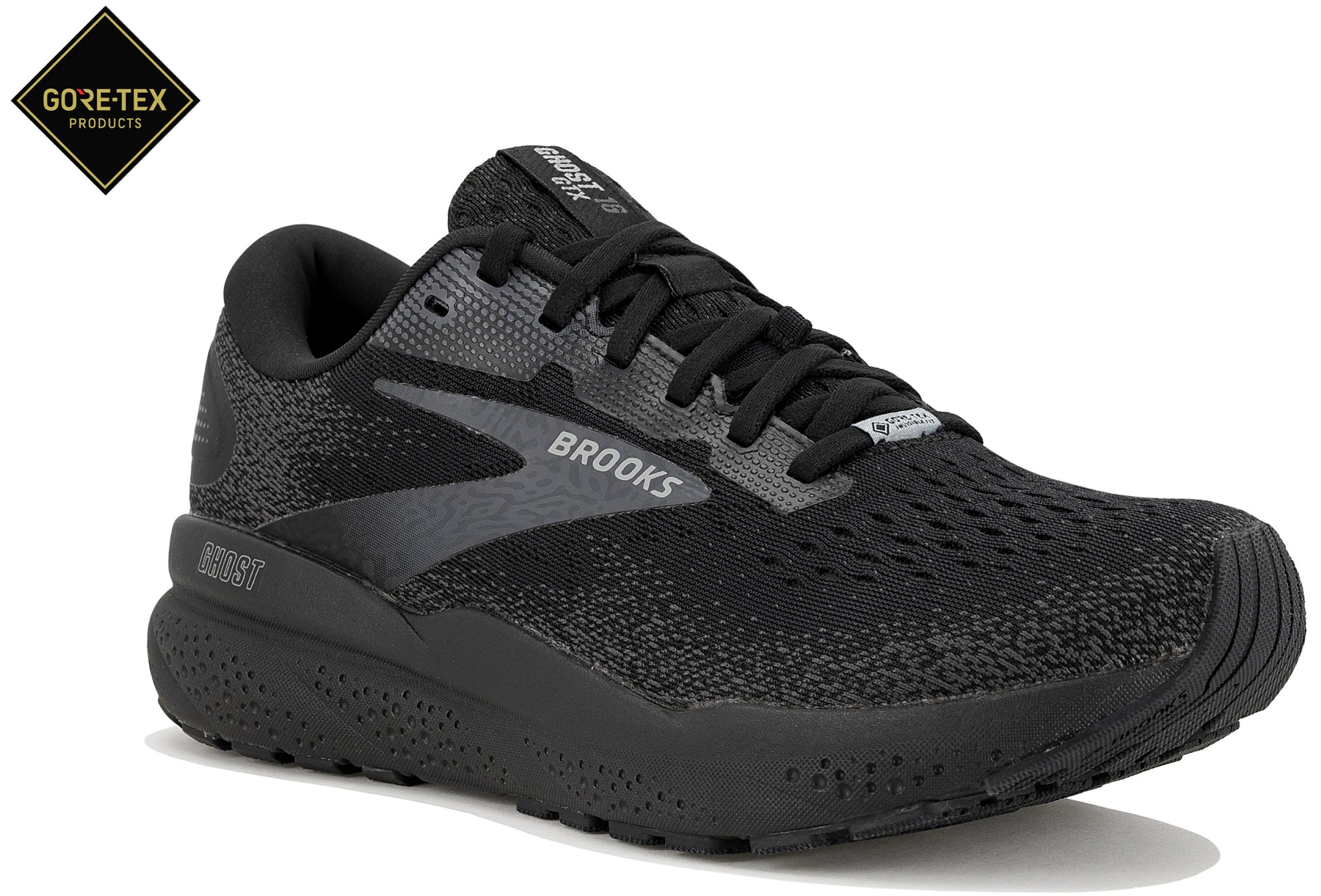Profitez d’une sensation de confort maximale à chaque instant lors de vos sessions de running grâce à la chaussure Brooks Ghost 16 Gore-Tex pour femme. Elle vous suit sereinement même par temps pluvieux. Ghost 16 Gore-Tex, pour quel type de sportive, quel usage, quelle distance et quelle surface ? Elle est parfaite pour des sportives de tous les niveaux à la recherche d’une paire capable de les accompagner régulièrement au fil des semaines. Vous bénéficiez de ses avantages sur toutes les distances, jusqu’au marathon. La fiabilité de sa semelle extérieure vous permet de parcourir sereinement vos itinéraires favoris sur les routes et chemins tracés. Ghost 16 Gore-Tex, quelle utilisation ? + Pensée pour vous apporter une aisance irréprochable en toutes circonstances, elle offre un amorti à la fois moelleux et rassurant. Cette version vous protège efficacement de la pluie. – Principalement imaginée pour votre bien-être, elle n’est pas prévue pour gagner en vitesse. Pour vos compétitions, nous vous conseillons la dynamique Hyperion Elite 4. Pourquoi choisir la Ghost 16 Gore-Tex ? En faisant le choix de la nouvelle Ghost, vous pouvez profiter : D’un revêtement imperméable capable d’offrir une protection maximale face aux intempéries. D’une mousse qui atténue efficacement les chocs pour des foulées plus douces que jamais. De transitions vers l’avant fluidifiées pour faciliter votre progression. D’une tige qui allie idéalement respirabilité et ajustement. D’un nouveau caoutchouc présent sur la semelle extérieure pour une meilleure durabilité dans le temps. D’une conception écologique à partir de matériaux recyclés. Ghost 16 Gore-Tex, quelles nouveautés ? La remplaçante de la Ghost 15 Gore-Tex vous propose : Une mise à jour de la mousse pour une efficacité accrue. Un caoutchouc léger, fabriqué à partir de silice recyclée. Une éco-conception plus poussée avec l’utilisation de l’équivalent de 10 bouteilles en plastique. Caractéristiques de la Ghost 16 GTX