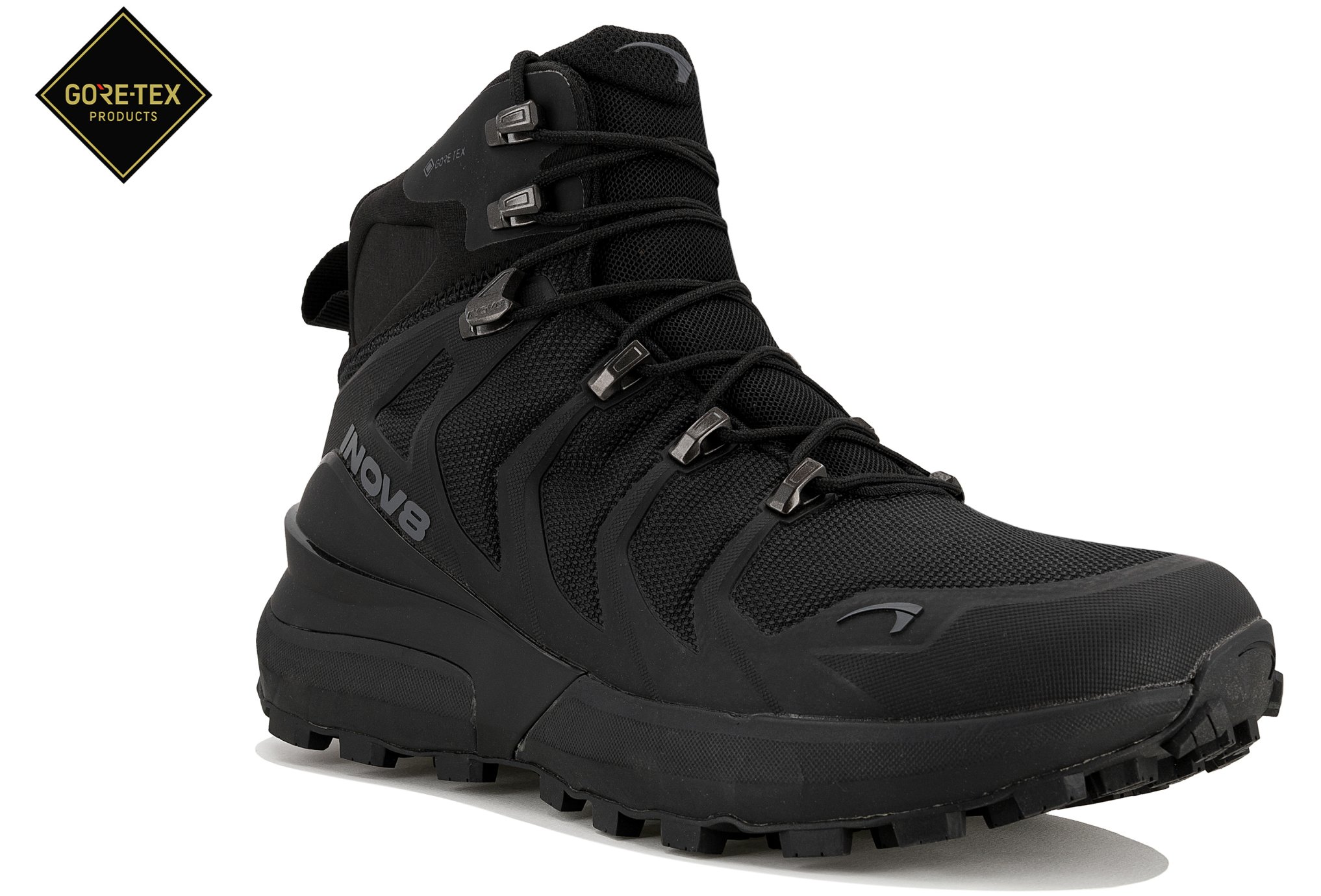Affrontez sereinement et dans les meilleures dispositions vos sentiers de randonnée préférés avec la chaussure Inov-8 Roclite Pro Mid Gore-Tex Wide pour homme.     Roclite Pro Mid Gore-Tex Wide, pour quel type de sportif, quel usage, quelle distance et quelle surface ?   Elle s’adresse à tous les publics, sa polyvalence la rend capable de suivre toutes les exigences. Polyvalente, elle convient à un usage intensif, pour des sorties de plusieurs journées mais aussi pour des aventures moins longues. Fiable en toutes circonstances, elle arpente sans difficulté les sentiers les plus difficiles.     Roclite Pro Mid Gore-Tex Wide, quelle utilisation ?   + Elle est adaptée à des excursions de plusieurs jours avec un sac à dos sur des terrains complexes et par tous les temps.   – Pour varier les plaisirs entre la randonnée et le trail, nous vous recommandons la légèreté de la Roclite G 315 Gore-Tex.     Pourquoi choisir la Roclite Pro Mid Gore-Tex Wide ?   La Roclite Pro Mid GTX vous donne la possibilité de profiter : D’une membrane imperméable Gore-Tex pour faire face à la pluie. D’une mousse qui allie stabilité et amorti. D’une tige en nylon balistique pour une grande robustesse. D’un pare-pierres et une plaque sous le pied pour un surplus de protection. De crampons de 6 mm pour gagner en traction et en accroche.     Caractéristiques de la Roclite Pro Mid GTX Wide   Drop : 6 mm.   Amorti : la mousse présente au niveau de la semelle intermédiaire parvient à absorber efficacement les chocs et vous permet de progresser sereinement. Elle offre une stabilité indéfectible pour plus de sécurité.   Empeigne (partie supérieure qui enveloppe le pied) : dotée d’une membrane Gore-Tex, elle vous promet une imperméabilité totale et une respirabilité optimale. La présence de nylon balistique accroît considérablement la durabilité.   Semelle extérieure : ses crampons de 6 mm sont renforcés avec du graphène pour une adhérence absolue sur toutes les surfaces. Vous bénéficiez d’une accroche solide et d’une force de traction suffisante pour progresser plus aisément.   Version Wide adaptée aux pieds larges Semelle intérieure amovible Poids constaté chez i-Run : 528 g en taille 42