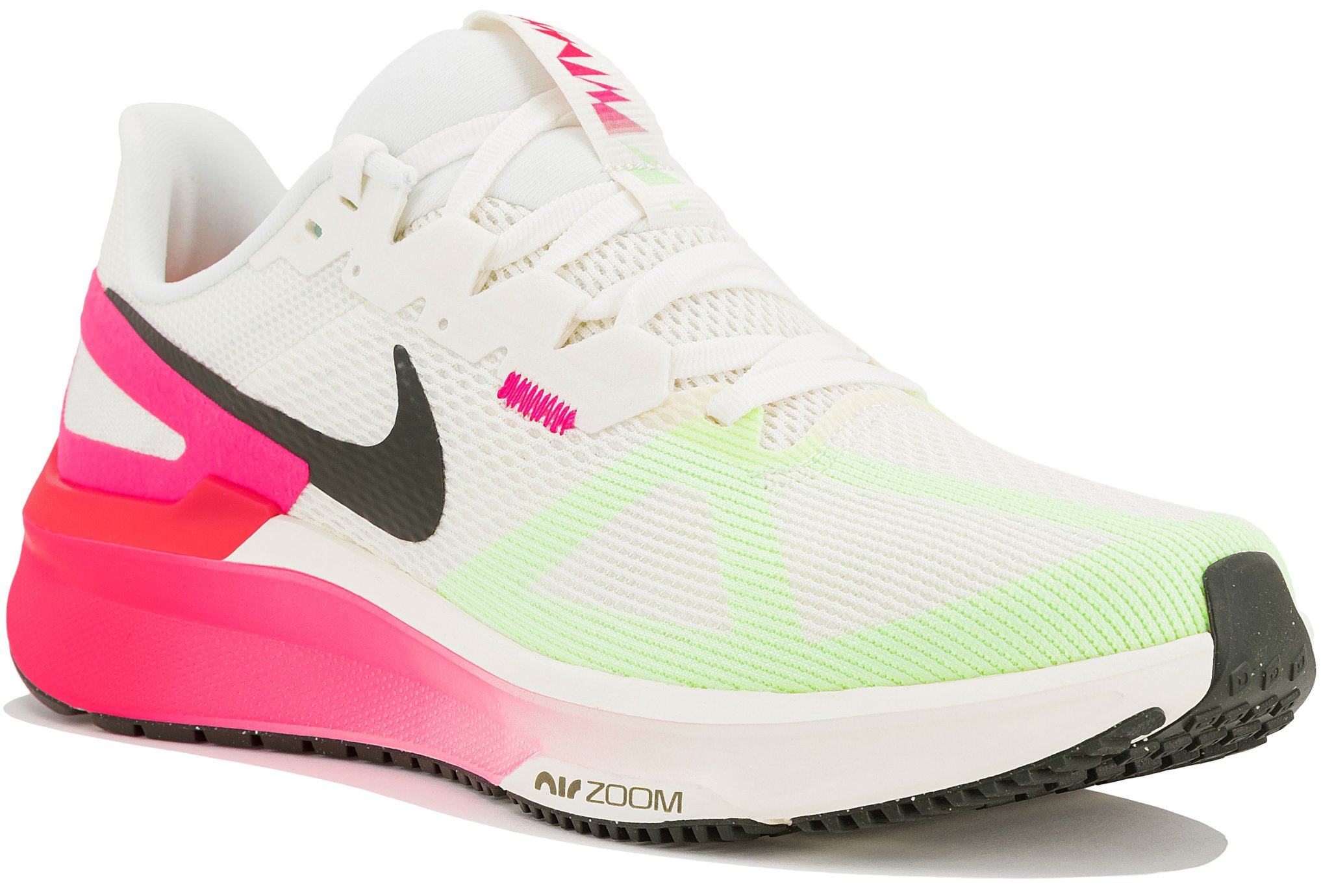 Revue pour une stabilité plus confortable que jamais, la chaussure Nike Structure 25 pour femme vous permet de profiter pleinement de vos séances de running. Totalement mise à jour, elle fait le bonheur des coureurs universels à pronateurs.     Structure 25, pour quelle sportive, quel usage, quelle distance et surface ?   La Nike Structure 25 est idéale pour les pratiquantes débutantes comme confirmées. Axée sur le maintien, elle convient pour les personnes souhaitant réduire le phénomène de surpronation durant leurs efforts. Confortable au quotidien, elle suit vos entraînements et vos sorties régulières (de 1 à plus de 4 fois par semaine). Vous avez la possibilité d’enchaîner les kilomètres sur les longues distances jusqu’au marathon ou bien de vous faire plaisir sur des distances plus courtes. Elle est adaptée au running sur route et sur chemin tracé.     Structure 25, quelle utilisation ?   + Son tout nouveau design et ses améliorations forment un ensemble particulièrement stable. Sa durabilité (capacité à résister au temps et aux utilisations répétées) vous accompagne sur les sessions longues tandis que sa réactivité facilite votre progression.   – Nous ne recommandons pas ce modèle pour les performances de vitesse. Si vous souhaitez un modèle plus dynamique pour les compétitions nous vous conseillons la Nike ZoomX Vaporfly Next%.     Pourquoi choisir la Structure 25 ?   Parmi ses différents atouts nous retrouvons : Une mousse légère et réactive pour faciliter vos efforts. Un amorti doux et durable qui vous suivra sur toutes les distances. Une structure de maintien optimisée pour réduire le phénomène de pronation. Une empeigne respirante. Un design plus dynamique.     Structure 25, quelles nouveautés ?   Comparée au modèle précédent, la Structure 24, la marque Nike a revu ces éléments : La semelle intermédiaire pour plus de souplesse, de réactivité et une stabilité maximale. Le système de maintien via un ajout de mousse au niveau de la voûte plantaire. La construction du talon moulé pour garantir un soutien optimal de la cheville et du tendon d’Achille. La conception de l’empeigne pour plus de respirabilité et un maintien fiable du pied. Un avant-pied plus large pour plus de confort. Un nouveau drop, passant de 8 mm à 10 mm.     Caractéristiques de la Structure 25   Drop : 10 mm   Amorti : La semelle intermédiaire est composée d’une couche épaisse de la mousse Cushlon 3.0 pour un amorti puissant et des réceptions en douceur. L’unité Air Zoom à l’avant vous permet de décoller du sol sans difficulté et de profiter d’un retour d’énergie efficace. Un renfort de mousse au niveau de la voûte plantaire empêche votre pied de subir une surpronation trop importante. La forme de balancier améliore la stabilité de vos foulées ainsi que la fluidité.   Empeigne (partie supérieure qui enveloppe votre pied) : Conçue avec une seule couche de mesh résistant, elle procure une source de fraîcheur longue durée et une durabilité exemplaire. Le nouveau design et sa nouvelle structure est axée sur un maintien optimisé et un look plus dynamique. Le talon moulé est pensée pour maintenir correctement votre cheville tandis que la zone avant élargie fait gagner en aisance.   Semelle extérieure : Son caoutchouc robuste et ses motifs gaufrés assurent une adhérence sûre même sur les routes mouillées.    Semelle intérieure amovible  Poids constaté chez i-Run : 261 g en taille 40