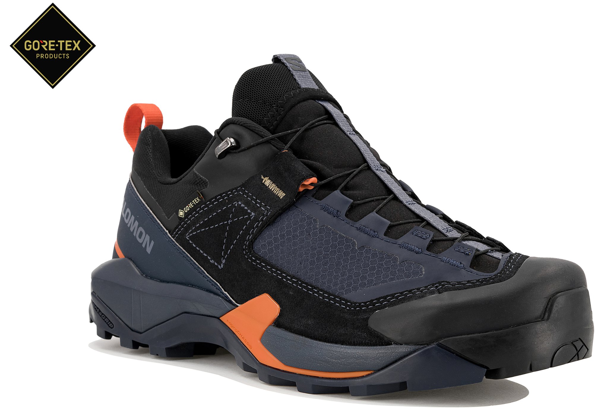 La chaussure Salomon X Ultra Alpine Gore-Tex pour homme est spécialement conçue pour vous suivre lors de vos randonnées en montagne.     X Ultra Alpine Gore-Tex, pour quel type de sportif, quel usage, quelle distance et surface ?   Accessible à tous les niveaux, elle promet une parfaite maîtrise des terrains alpins, secs ou mouillés. Elle convient autant pour la marche d’approche que les randonnées intenses. Sans limite de distance, elle est idéale pour les sorties à la journée.     X Ultra Alpine Gore-Tex, quelle utilisation ?   + Adapté aux sols boueux, secs ou rocailleux, ce modèle offre une protection optimale du pied pour vos aventures outdoor. Sa conception ingénieuse promet confort, accroche et agilité.   – Si vous souhaitez un modèle axé sur le confort et l’amorti sur de longues distances, nous vous conseillons la Salomon Elixir Gore-Tex.     Pourquoi choisir la X Ultra Alpine Gore-Tex ? Parmi ses nombreux avantages, vous appréciez :  Son accroche indéfectible sur l’ensemble des surfaces alpines. Sa précision sur les chemins escarpés. Son haut niveau de protection et sa grande stabilité. Son imperméabilité fiable. Son amorti performant pour plus de confort.     Caractéristiques de la chaussure X Ultra Alpine GTX   Amorti : La mousse amortissante sur toute la longueur absorbe les impacts et fluidifie vos foulées. Le nouveau châssis intégré à la semelle intermédiaire est gage de rigidité en torsion pour autoriser plus de précision dans vos déplacements.   Empeigne (partie supérieure qui enveloppe votre pied) : Conçue en partie avec du cuir, elle se pare d’une membrane imperméable Gore-Tex pour une parfaite protection du pied. Le système de laçage rapide descend bas pour un ajustement personnalisé.   Semelle extérieure : Sa gomme extrêmement adhérente est associée à des crampons ingénieux pour maximiser l’accroche. Vous bénéficiez d’une force de traction puissante pour faciliter votre progression sur les chemins de montagne.   Pare-pierres à l’avant Semelle intérieure amovible Ortholite Poids constaté chez i-Run : 450 g en taille 42 Toutes les chaussures de randonnée